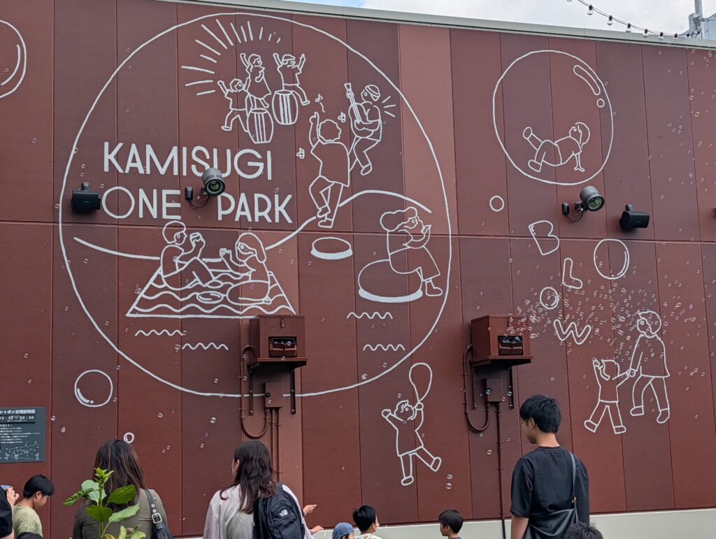 日中には大量のシャボン玉が壁に取り付けられた装置から出てくるようです。