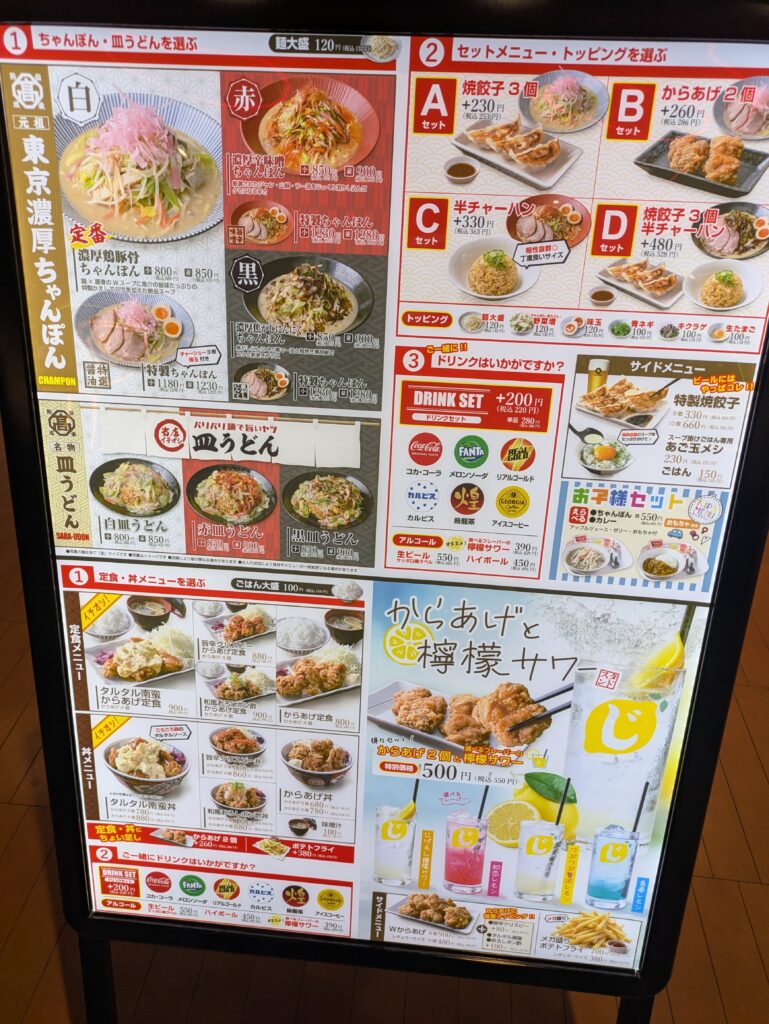 じげもんちゃんぽん食堂/からあげと檸檬サワースタンド ということで、ちゃんぽん以外にもからあげを使ったメニューなどもあります。