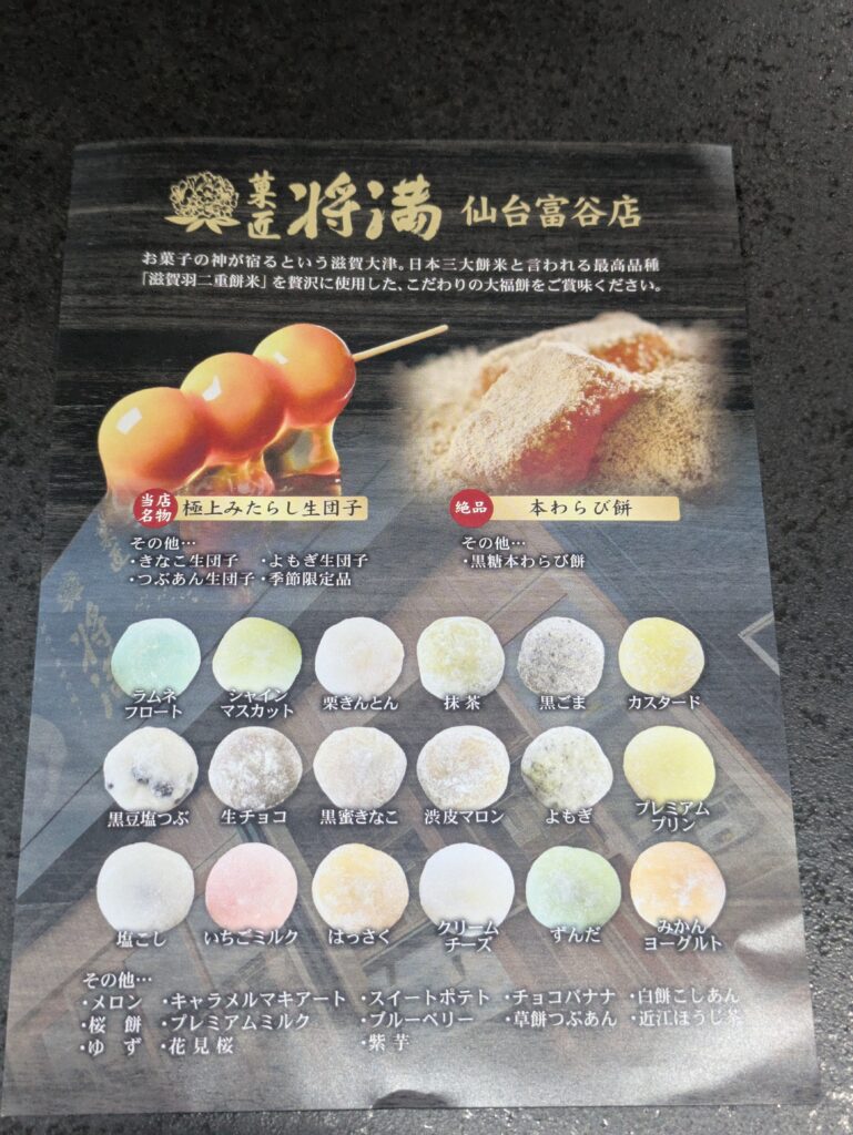 2025年11月29日、宮城県富谷市に新しくオープンした和菓子店【菓匠将満(かしょうまさみつ)富谷店】。