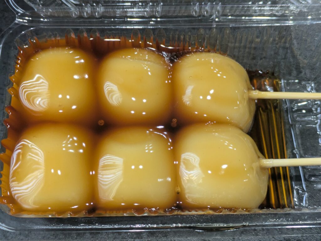 よくある焼き目のついたみたらし団子も好きですが、お餅が好きな人にとってはたまらないもちもち食感だと思います。