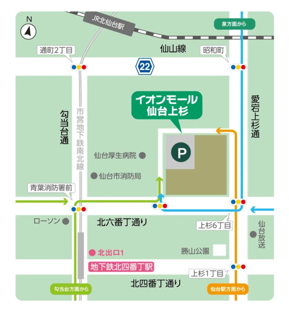 イオンモール仙台上杉の公式ホームページに分かりやすい画像がありました。